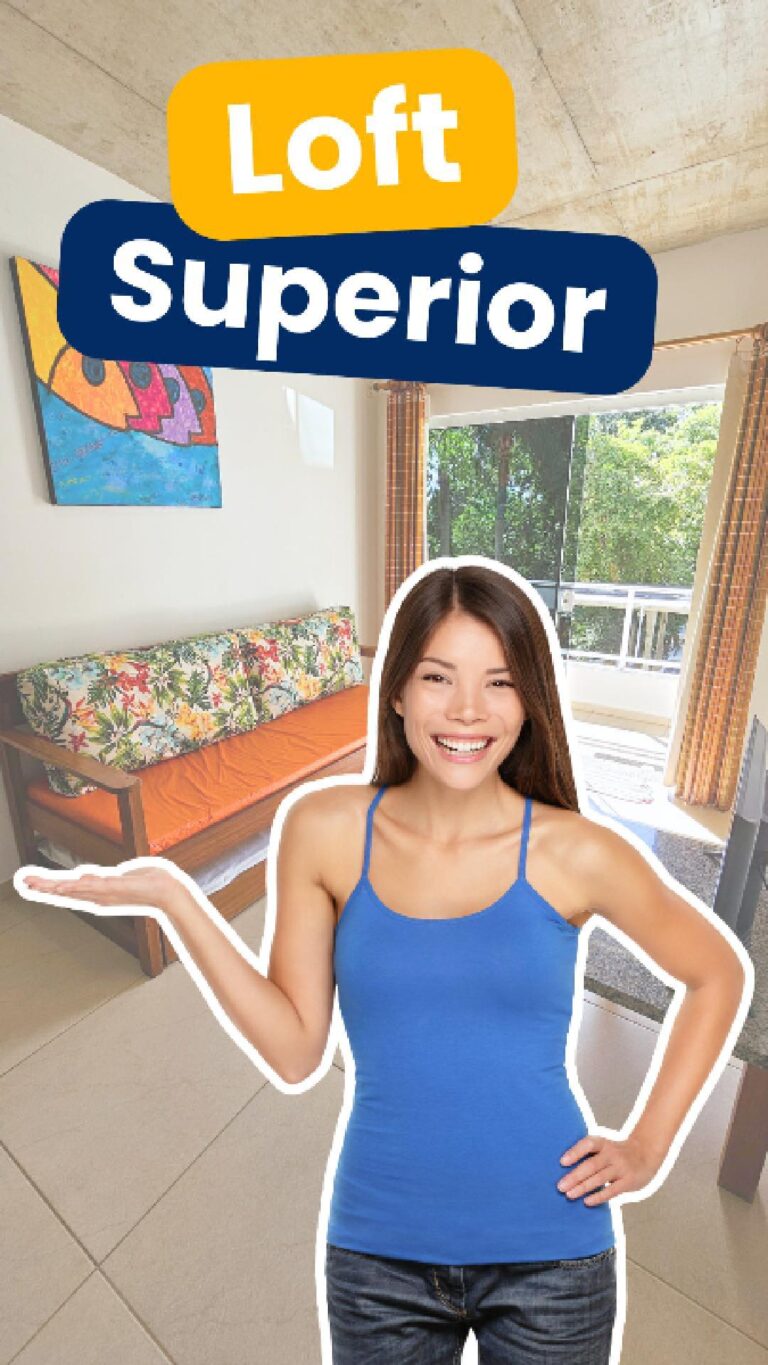 O Loft conta com uma cama queen size com pillow top que pode ser separada em duas camas de solteiro (mediante solicitação), além de um sofá-bicama que acomoda até duas pessoas. O ambiente é equipado com ar-condicionado Split, cortinas blackout, Smart TV, cofre, Wi-Fi de alta velocidade e banheiro completo com ducha higiênica e chuveiro com aquecimento solar.