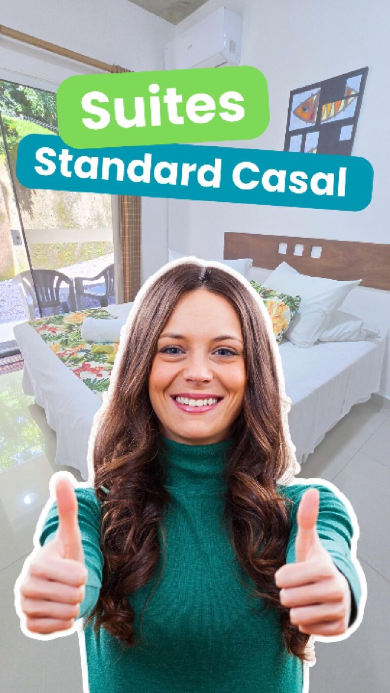 A Suíte Standard Casal conta com cama queen size com pillow top (que pode ser montada como duas camas de solteiro, se solicitado), ar-condicionado Split, cortinas blackout, Smart TV de 32″, Wi-Fi de alta velocidade, banheiro completo com ducha higiênica e chuveiro com aquecimento central, além de geladeira, micro-ondas, chaleira elétrica, pia de apoio e mesa de jantar.